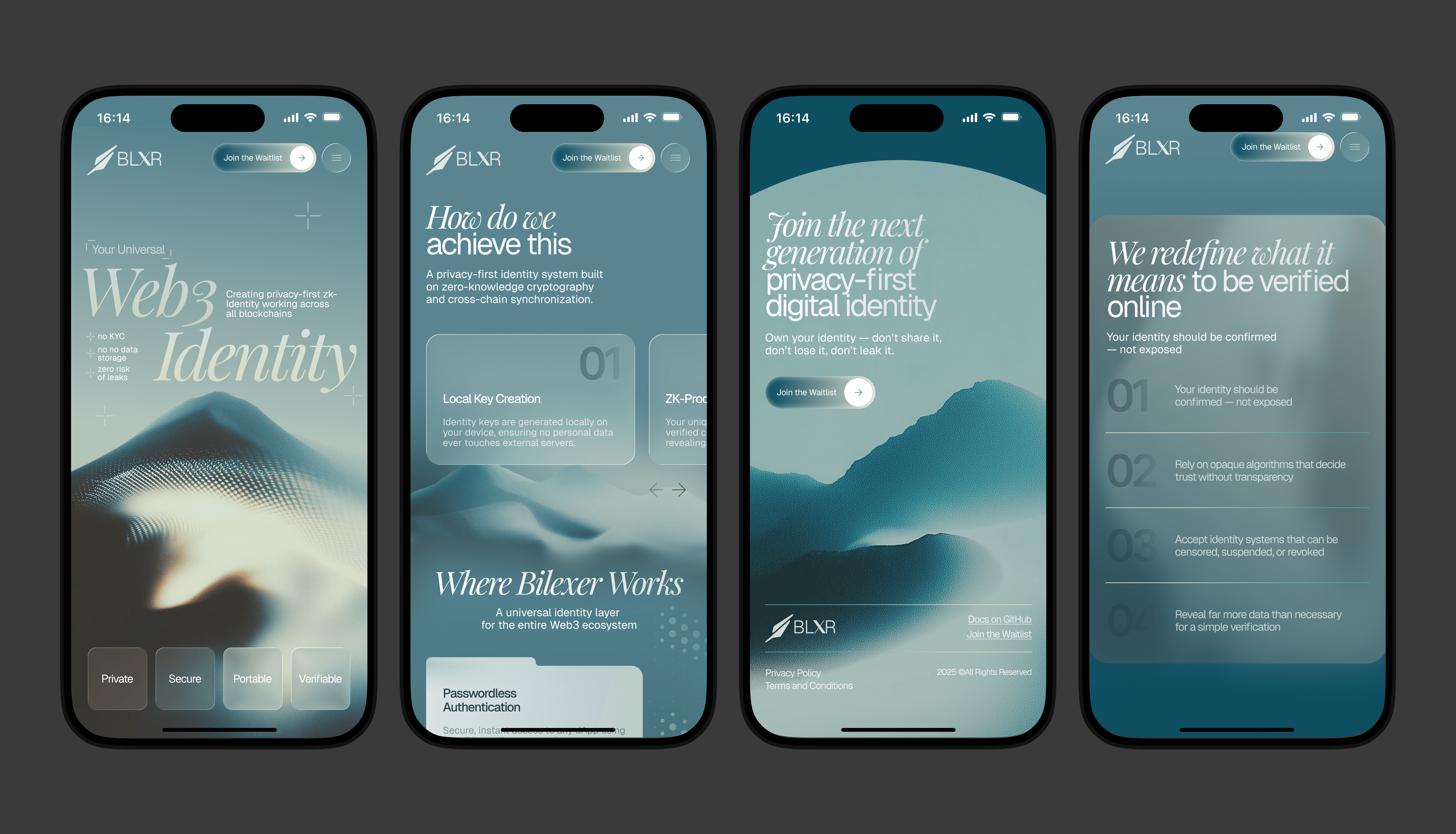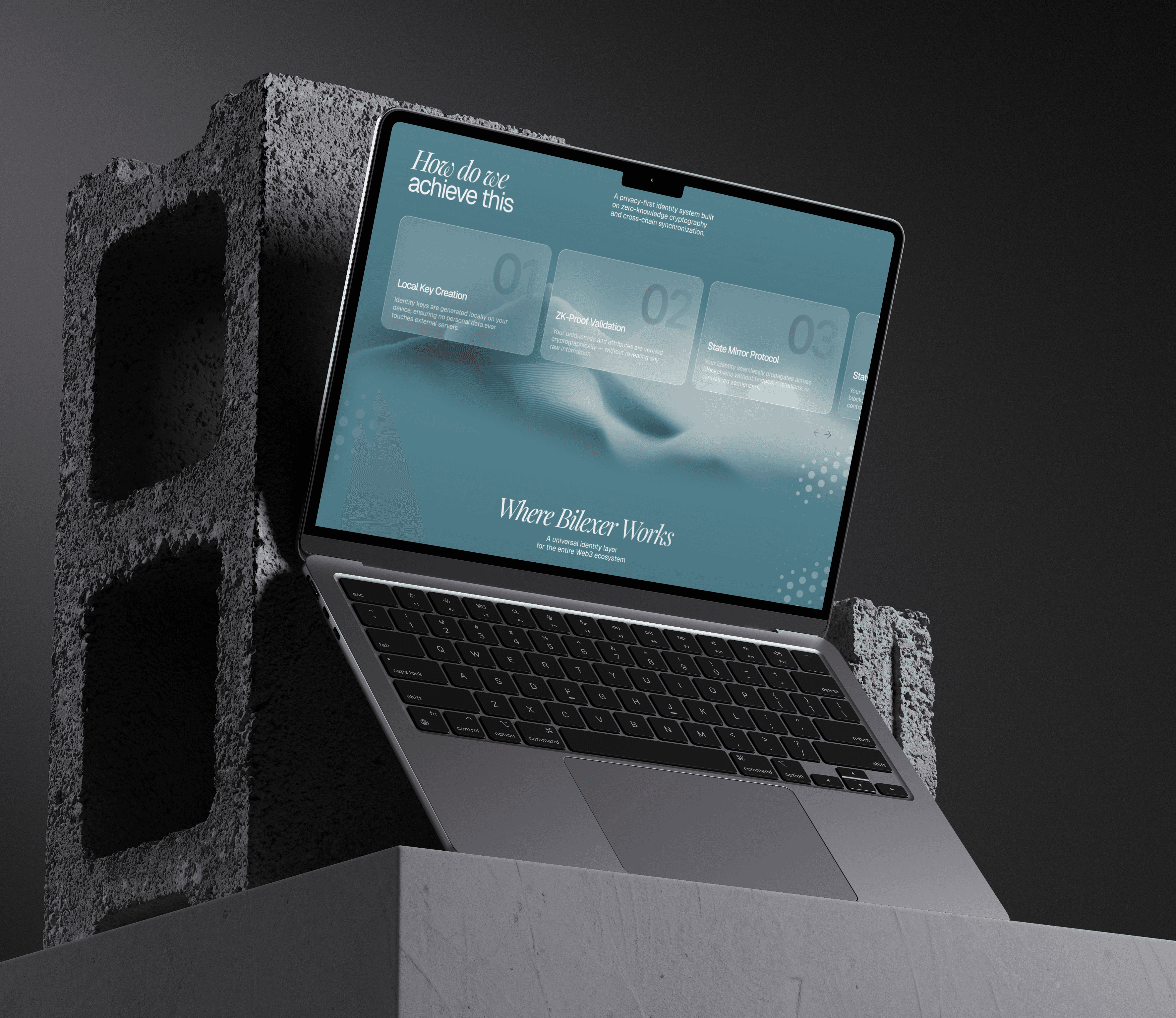 The Web3 ecosystem is saturated with visually similar projects: dark interfaces, neon accents, overly “futuristic” aesthetics. Bilexer introduces a fundamentally new type of digital identity based on ZK-cryptography, and the challenge was to: