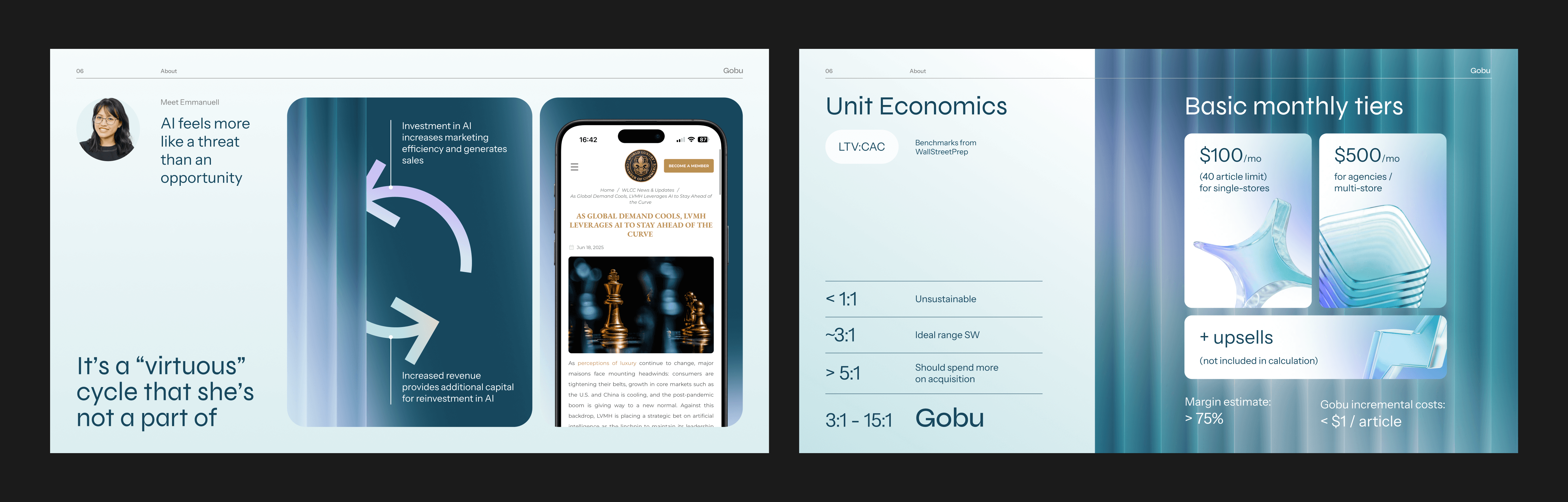 Market Value Framing: Clear emphasis on opportunity size, competitive advantage, and Gobu’s position within the broader AI landscape.